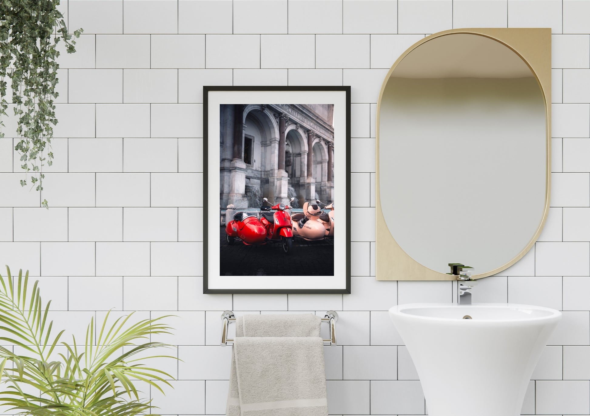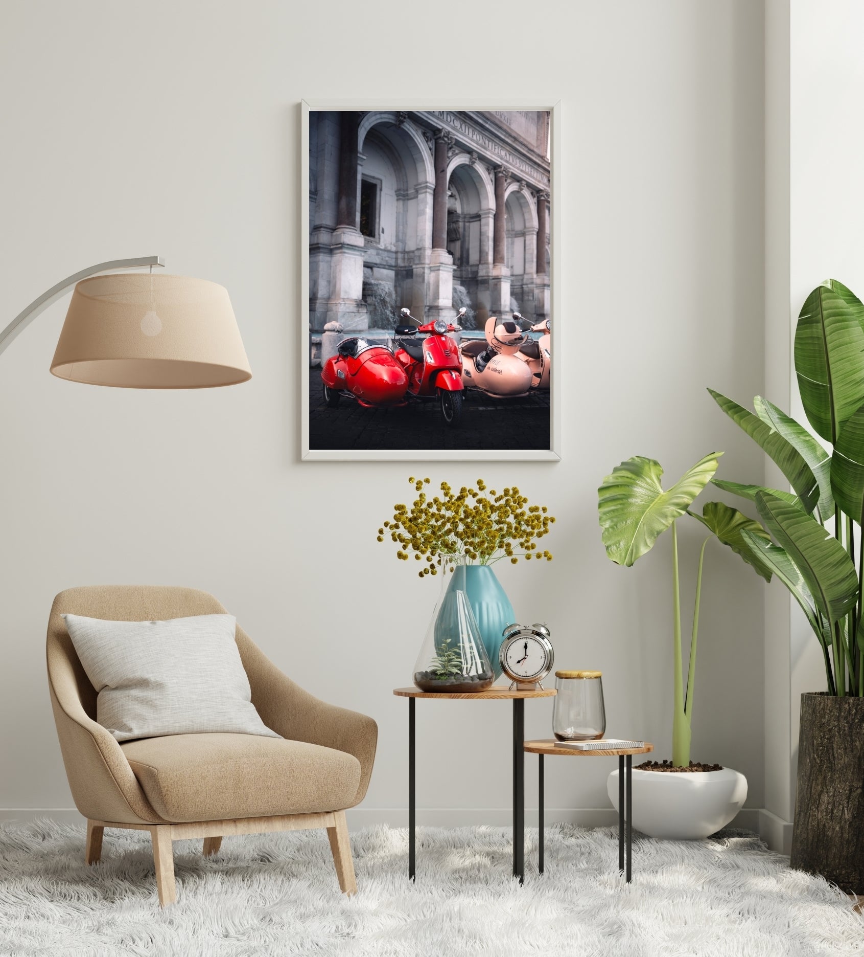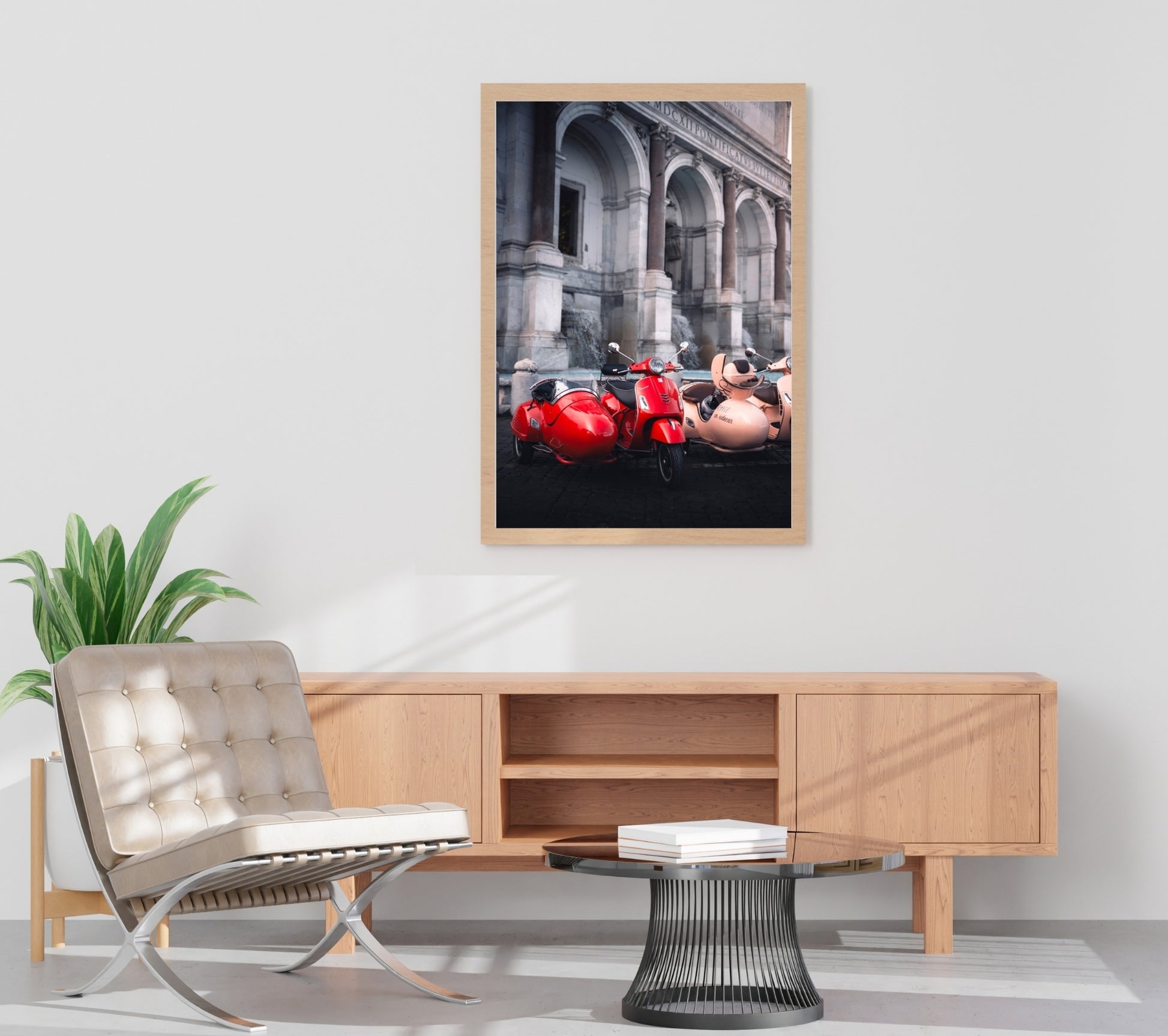 Capture the essence of Italian charm with this vibrant photograph of a classic red scooter parked before Rome's iconic fountain. Perfect for travel enthusiasts and lovers of European culture, this image brings the romance and energy of the Eternal City into your space. Whether you're dreaming of your next adventure or reminiscing about past travels, this playful scene celebrates the carefree spirit of la dolce vita. A delightful addition to any room seeking a splash of color and wanderlust.
