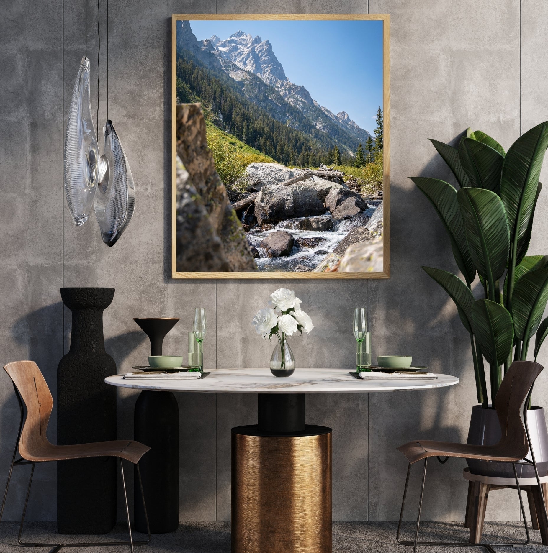 Escape to the majestic beauty of the Grand Tetons with this stunning valley landscape. Towering peaks meet lush meadows in a scene that captures nature's raw grandeur. Perfect for adventurers, nature lovers, and anyone seeking inspiration from the wild. Bring home a piece of Wyoming's most iconic vista and let your walls tell the story of untamed wilderness and breathtaking vistas.